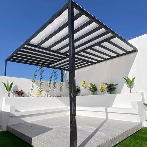 المظلات المعدنية ليست فقط للاستخدام العملي، بل يمكن أن تُشكل عنصرًا تصميميًا مهمًا، حيث يمكن إضافة تفاصيل زخرفية أو إضاءة خارجية تجعل المكان جذابًا وراقيًا، سواء كان منزلًا، مطعمًا، أو مساحة عامة.